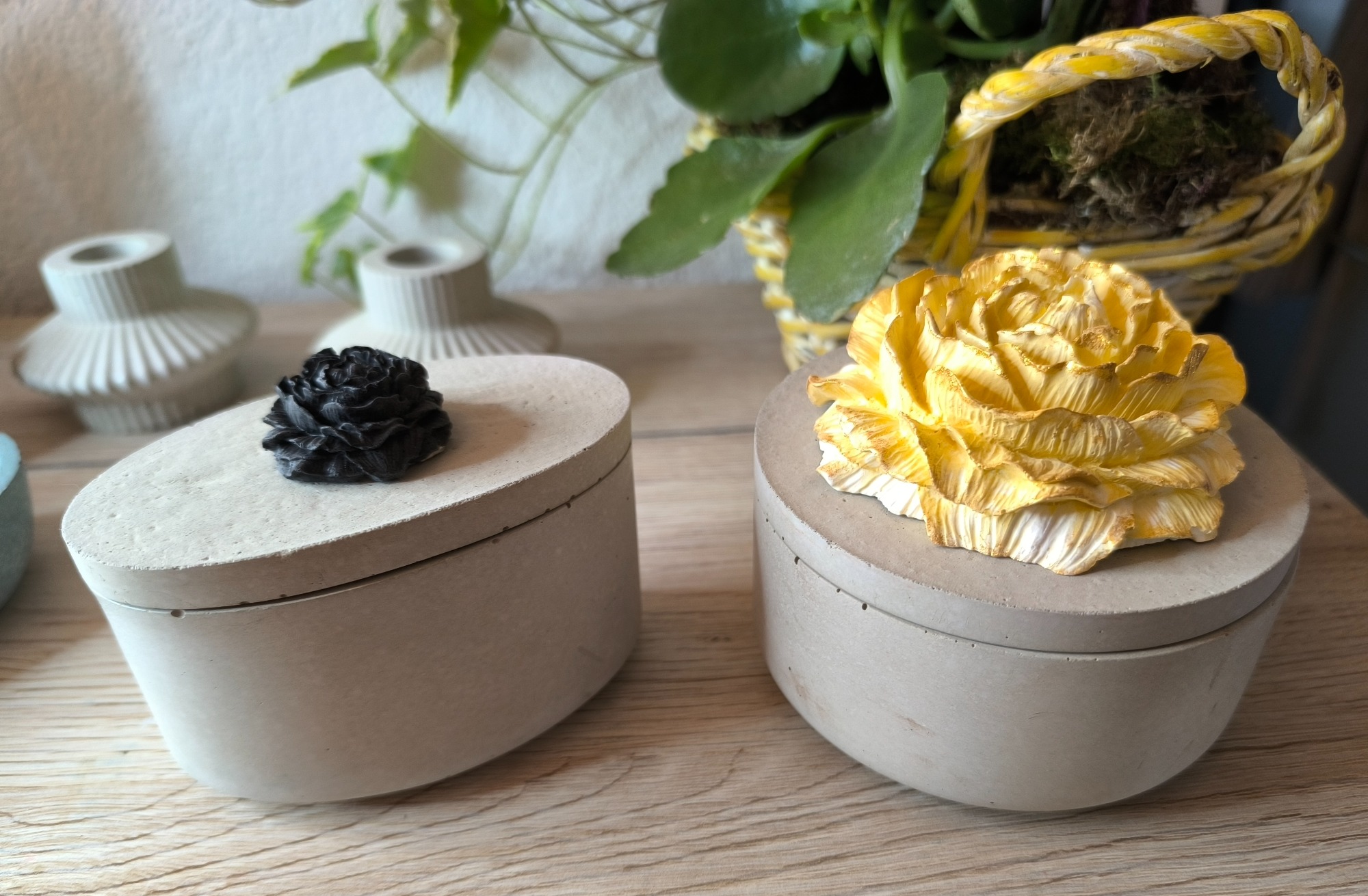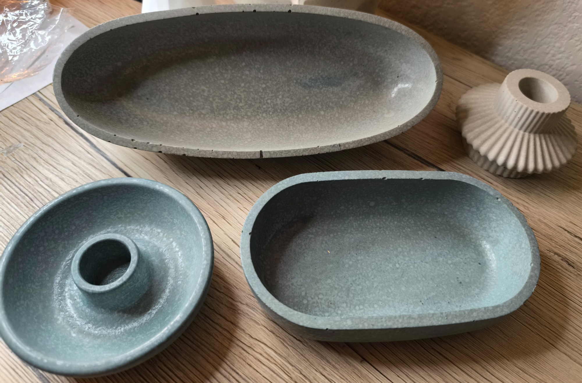 La jesmonite (ac 100, ac 730), la résine et le béton (ac 84) synthétiques sont des matières premières douces, écologiques et non toxiques.